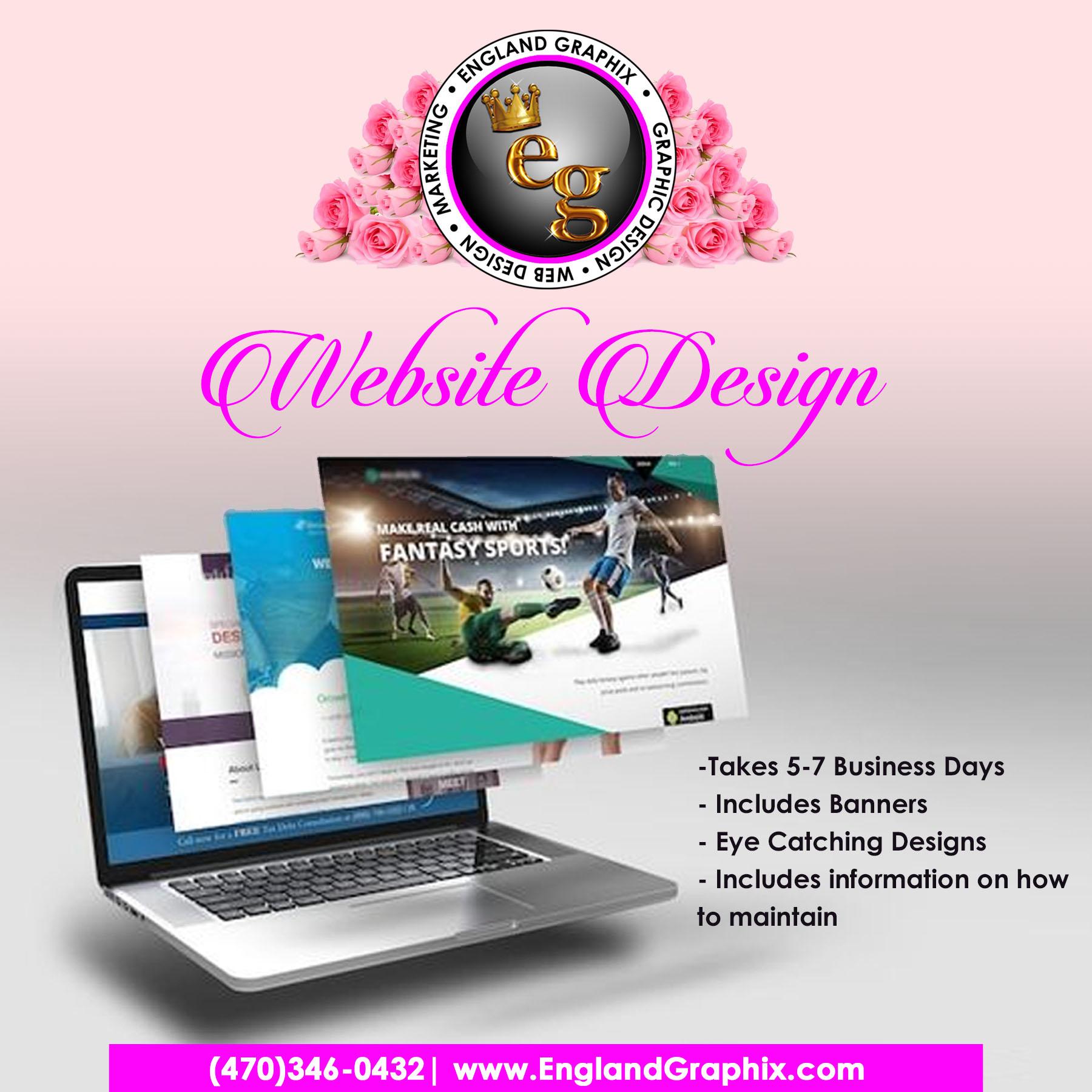 Fill out the form below to get started with your website. I will need to know the title of your three pages ex. Home Products Contact. I will need a welcome statement, a brief bio, pictures and prices of your products, your logo, and social media handles. Please send me what functions you would like on your website: contact page, booking tools, products, etc.